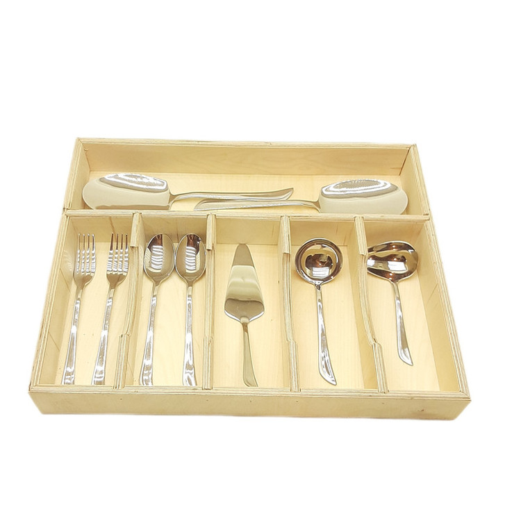 در این محصول فضای نگهدرای تمامی سرویس قاشق و چنگال در کشوی کابینت در نظر گرفته شده و اندازه دقیق این محصول 36x46 است که برای یونیت 45 زمینی یا کشوی به اندازه پشت در پشت 45x50 در نظر گرفته شده این دسته کشو در کابینت گاز موجود است ضخامت چوب بدنه 12 میل و کفه 4 میل پلی وود روس که مقاوم و کاملا ضد آب است