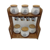متاسفانه این کالا در حال حاضر موجود نیست. میتوانید از طریق لیست بالای صفحه، از محصولات مشابه این کالا دیدن نمایید.این ست تشکیل شده از 3 عدد بانکه بزرگ به سایز 15x12 و 3 عدد بانکه متوسط به سایز 12x10 با دربهای چوبی و جنس بدنه سرامیک و 4 عدد فنجان قهوه خوری جنس چینی و یک عدد استند چوبی به سایز 41x20 به ارتفاع 42 سانت