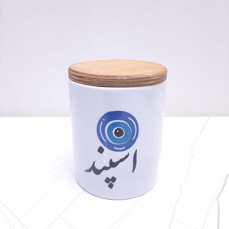 این بانکه به قطر 8 سانتیمتر و ا ارتفاع 10 سانتیمتر تا لبه کار و تا روی درب 11 سانتیمتر می باشد جنس این کار چینی و جنس درب از چوب به ضخامت 12 میلیمتر می باشد که به صورت ساده روی ظرف اصلی سوار می شود