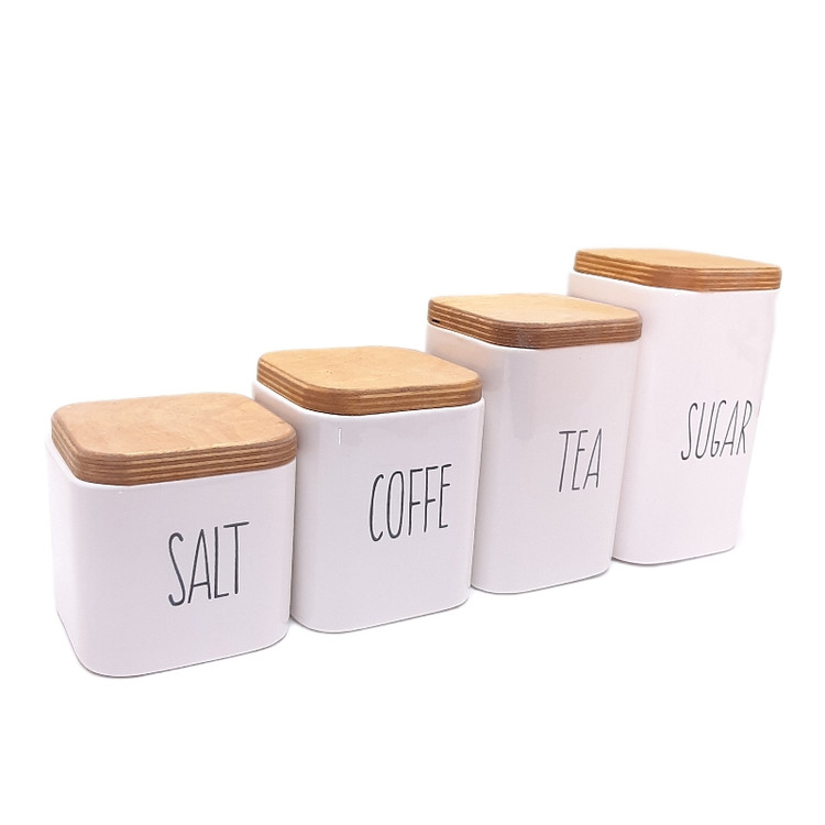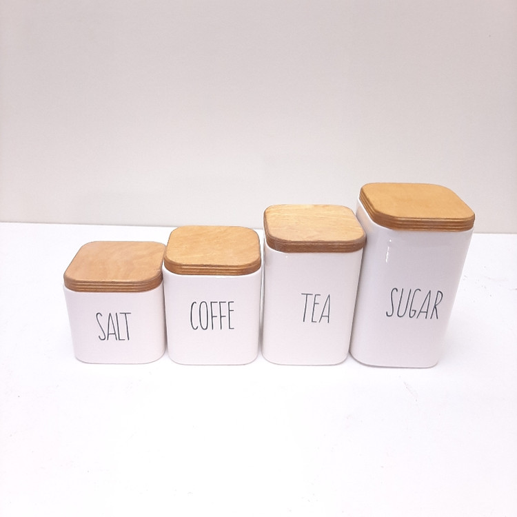 این ست بانکه تشکیل شده است از 4 عدد بانکه سرامیکی بزرگ به ارتفاع 15 قطر 9 و نیمه متوسط 13 ارتفاع قطر 9 و متوسط 11 قطر 9 و کوچک ارتفاع 9 و قطر 9 سانتیمتر با تکستهای مطابق با عکس و دربهای چوبی به ضخامت 15 میل قابل شستشو