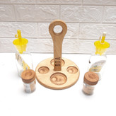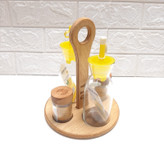 این ست تشکیل شده است از 2 عدد روغن ریز 300 میل شیشه ای و 2 عدد نمک و فلفل پاش شیشه ای با درب چوبی از برند امپرلند و یک استند چوبی طارحی شده برای این ست که زیبایی 2 چندان به این محصول بخشیده