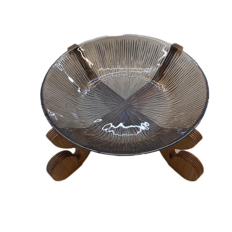 این محصول با طراحی زیبا و کار آمد برای سرو انواع خورش مناسب می باشد جنس کاسه از شیشه تولید شرکت نوری تازه و پایه مستحکم از جنس چوب پلی وود با رنگ قهوه ای روشن مات می باشد لازم به ذکر است که رنگ کاسه شامپاینی می باشد