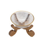 این محصول با طراحی زیبا و کار آمد برای سرو انواع وعده های غذایی مانند آش آبگوشت سوپ و... مناسب می باشد جنس کاسه از شیشه تولید شرکت نوری تازه و پایه مستحکم از جنس چوب پلی وود با رنگ قهوه ای روشن مات می باشد لازم به ذکر است که رنگ کاسه سفید و لبه کار طلایی می باشد