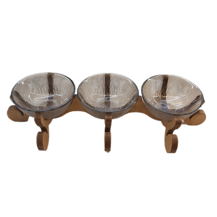 این محصول، مناسب برای پذیرایی مهمانی ها و مجالس می باشد. این محصول، دارای 3 ظرف شیشه ای و پایه ساخته شده از جنس چوب مستحکم و ضد رطوبت پلی وود می باشد.