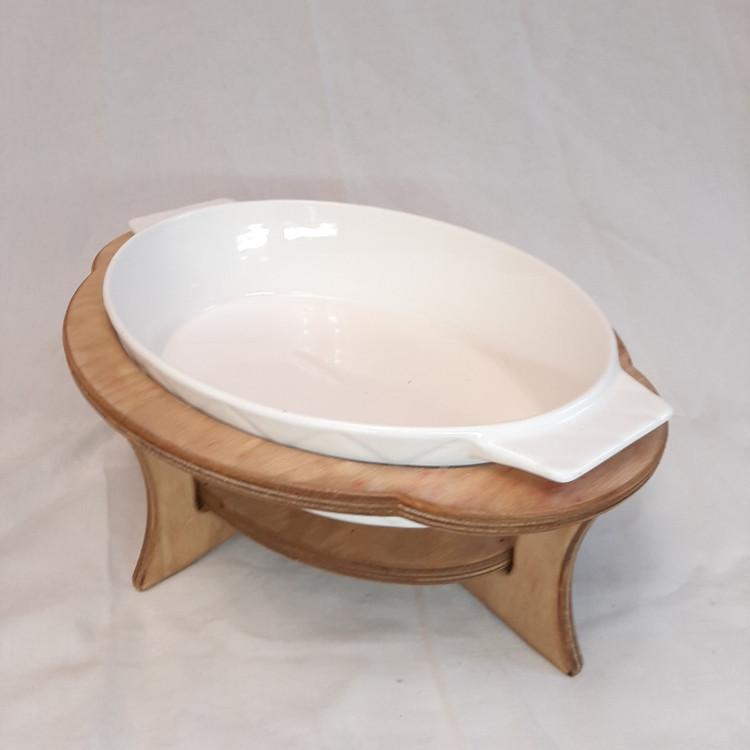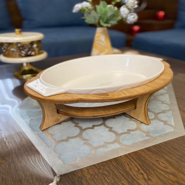 این ظرف سرو خورش یا غیره تشکیل شده است از یک عدد ظرف سرامیکی مقاوم که قابل استفاده در فر و ماکروویو می باشد که این ظرف دارای پایه چوبی از جنس چوب پلی وود ضد آب بوده که در آن جای وارمر یا شمع تعبیه شده است