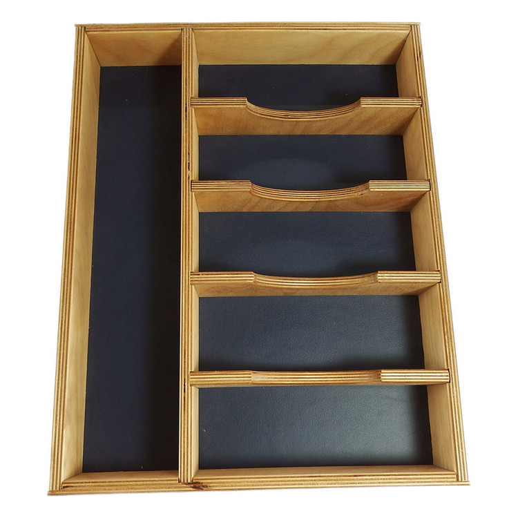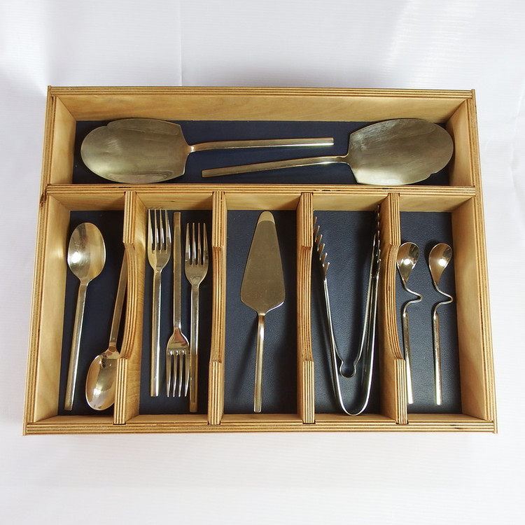 در این محصول فضای نگهدرای تمامی سرویس قاشق و چنگال در کشوی کابینت در نظر گرفته شده و اندازه دقیق این محصول 36x46 است که برای یونیت 45 زمینی یا کشوی به اندازه پشت در پشت 45x50 در نظر گرفته شده این دسته کشو در کابینت گاز موجود است ضخامت چوب بدنه 12 میل و کفه 4 میل پلی وود روس که با چرم با رنگ مطابق با تصویر پوشانده شده مقاوم و کاملا ضد آب است